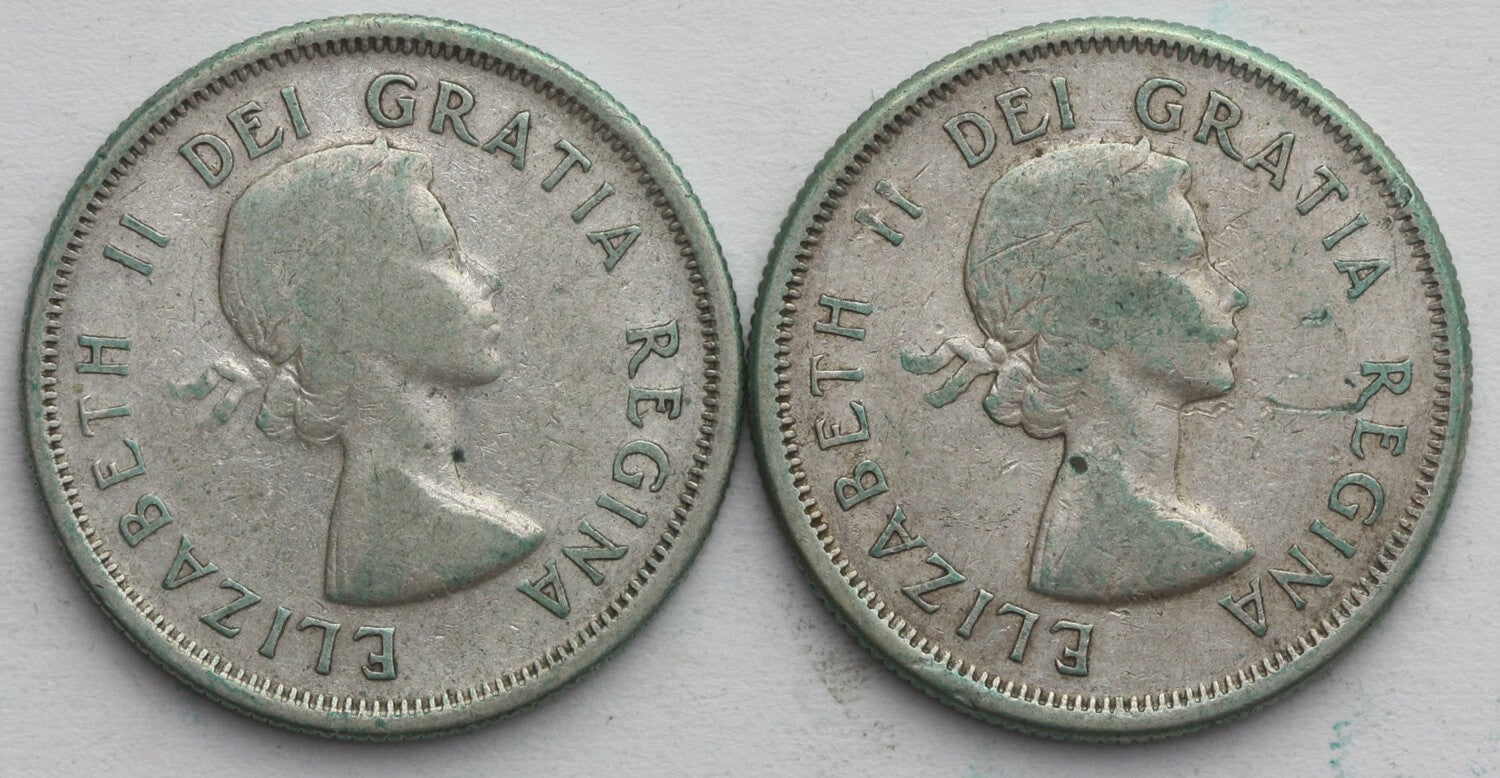 Kanada, Lot: 2 x 25 centów, srebro, 1955, 1963