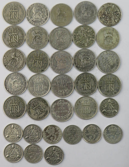 Lot, Wielka Brytania, 24 x 6 pensów + 10 x 3 pensy, srebro