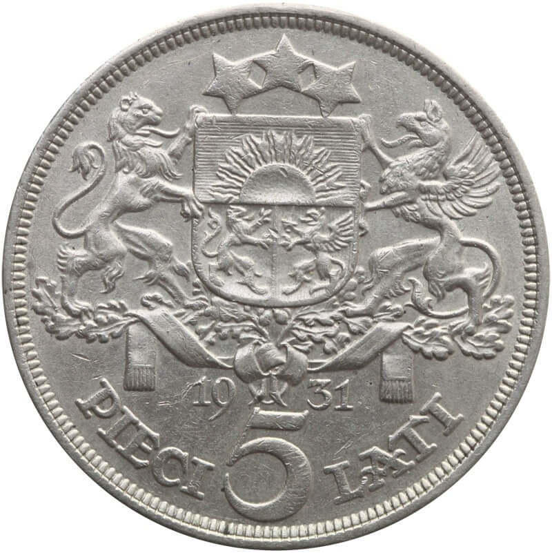 Łotwa, 5 łatów 1931, st. 2