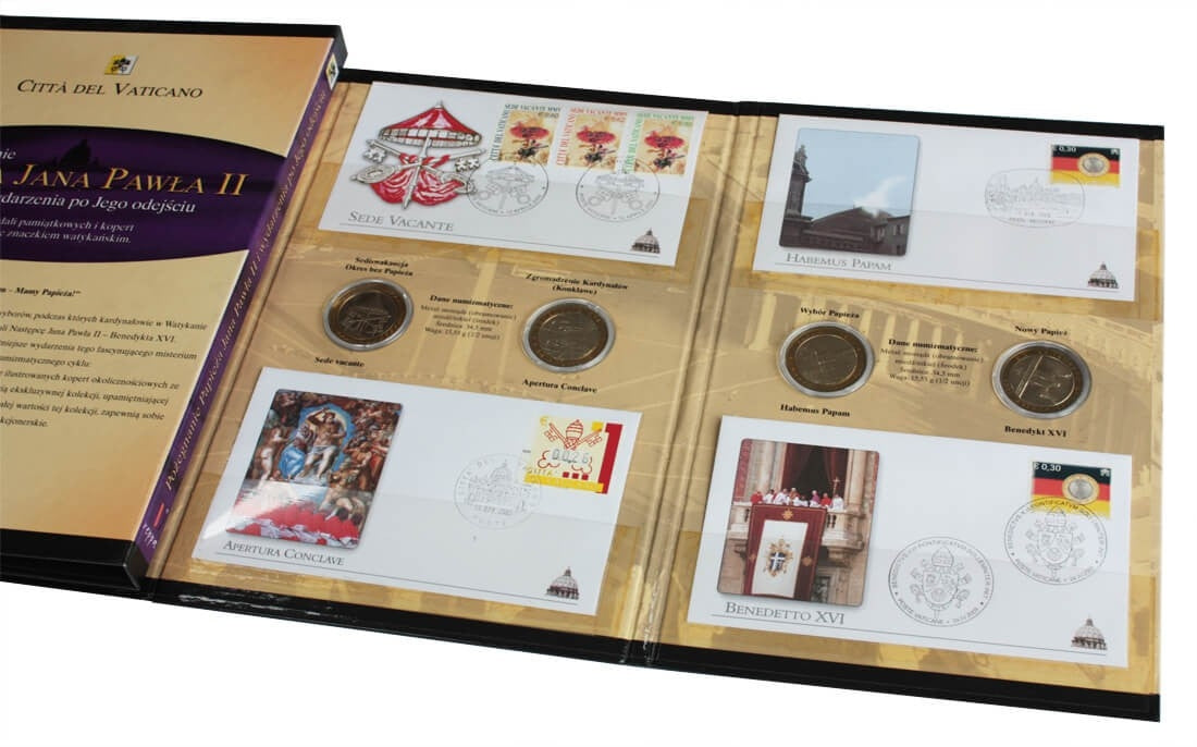 Pożegnanie Jana Pawła II - 6 medali + 6 kopert ze znaczkami i stemplem Poczty Watykańskiej