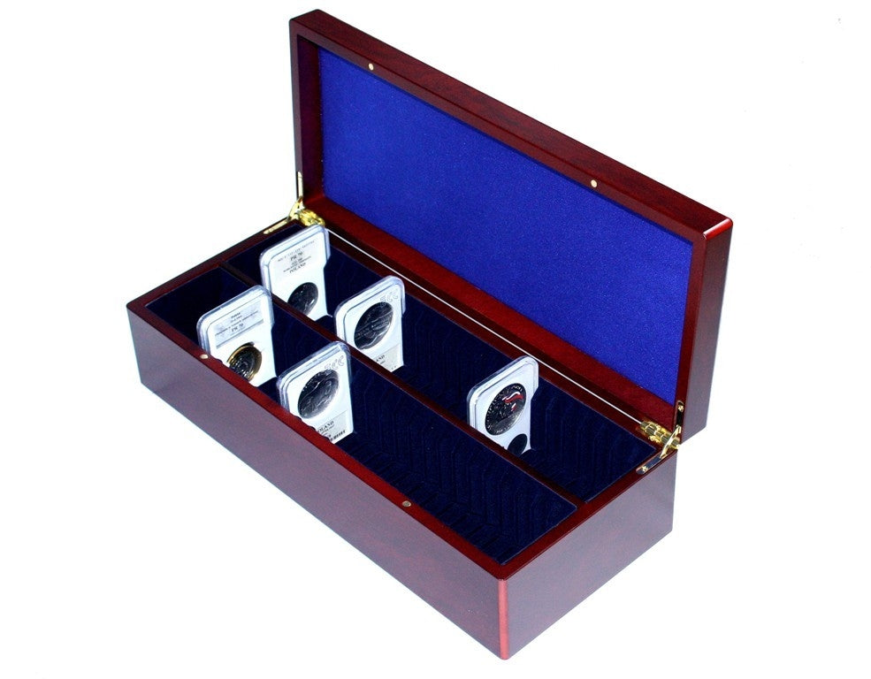 Pudełko mahoniowe do przechowywania 50 monet w slabach