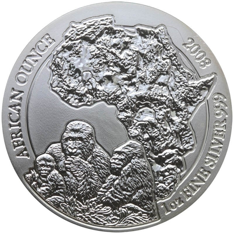 Ruanda 50 Franków 2008 Goryle, Srebro, Ag999