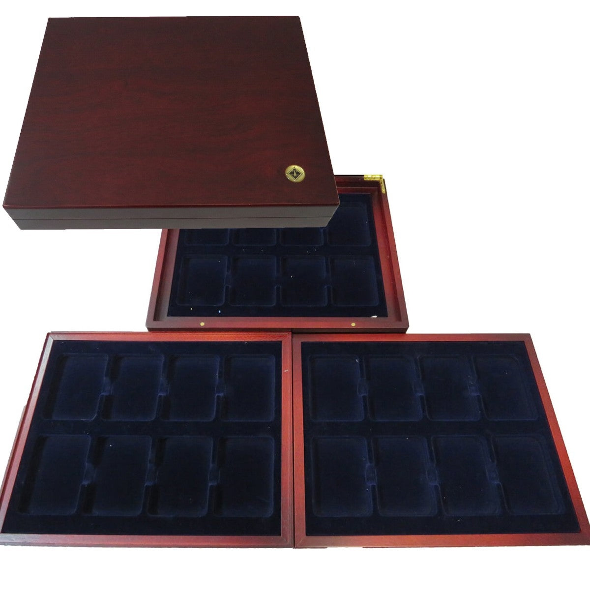 Używana mahoniowa kaseta Leuchtturm do 24 monet w gradingu - JAK NOWA