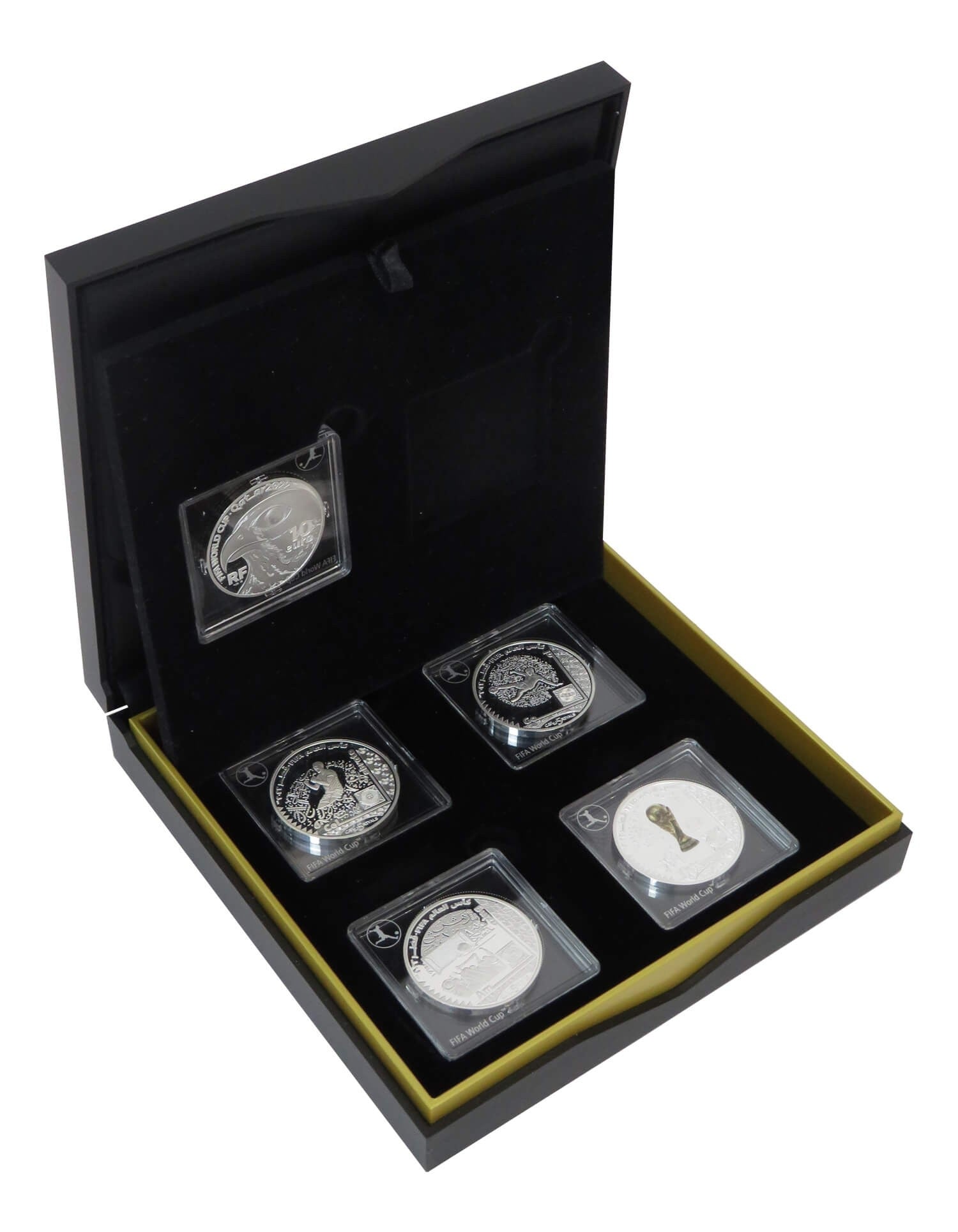 Zestaw 5 monet Fifa World Cup Quatar 2022, 4x 5 Riyals (Katar) + 1x 10 euro (Francja), 2022
