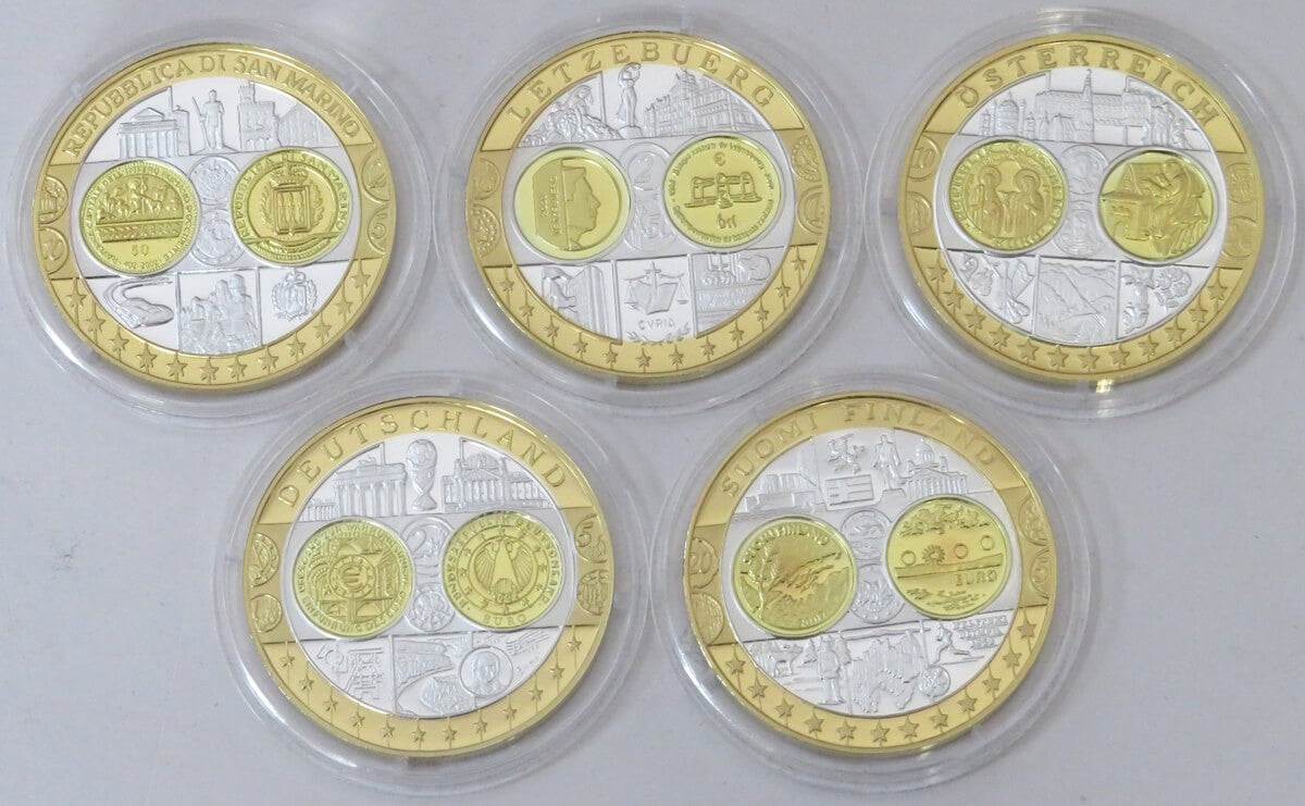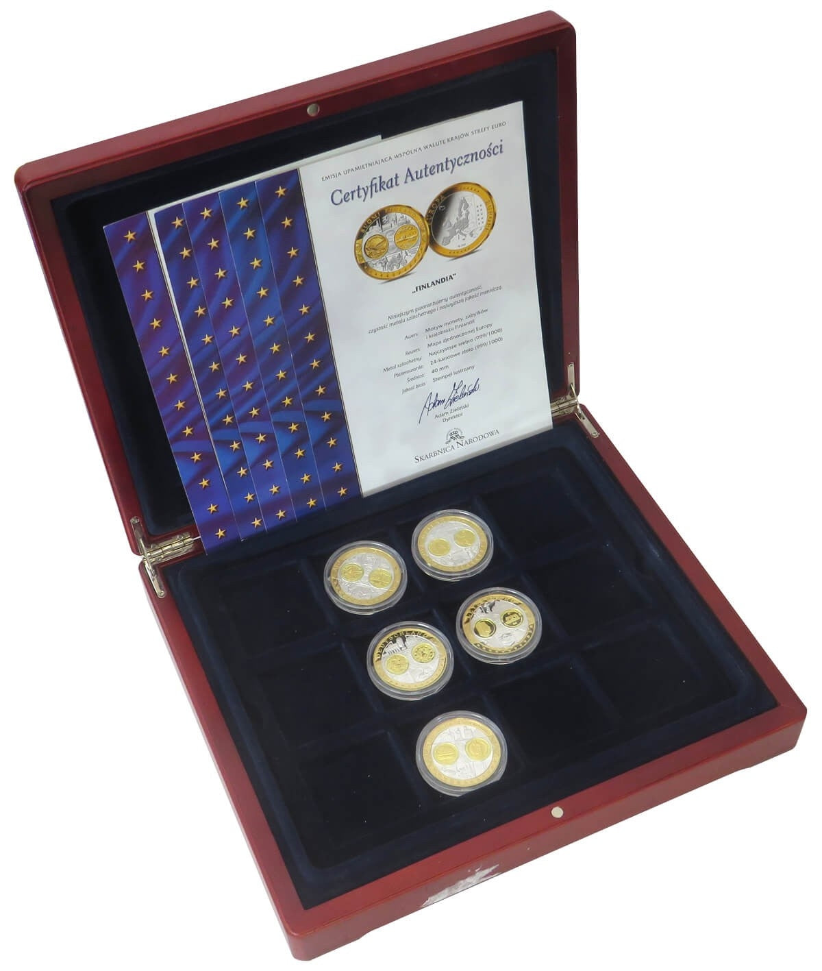 Zestaw 5 x Wspólna waluta Europy, Ag 999 + pudełko